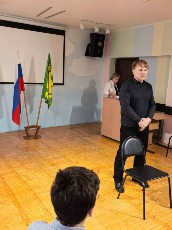 Представитель объединения «Моторота» Эдуард Николаевич Медведев поговорил с ребятами о главном: о подвиге, героизме и правильных поступках. Школьники активно рассуждали о дружбе, уважении к семье и учителям.
