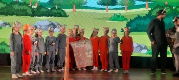Первый класс устроил настоящий праздник для всей начальной школы и детского сада! Юные артисты представили премьеру поучительной сказки «Лисья норка и заячья горка».
