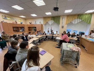 Представитель объединения «Моторота» Эдуард Николаевич Медведев поговорил с ребятами о главном: о подвиге, героизме и правильных поступках. Школьники активно рассуждали о дружбе, уважении к семье и учителям.
