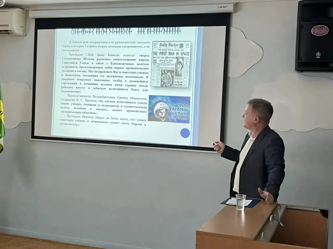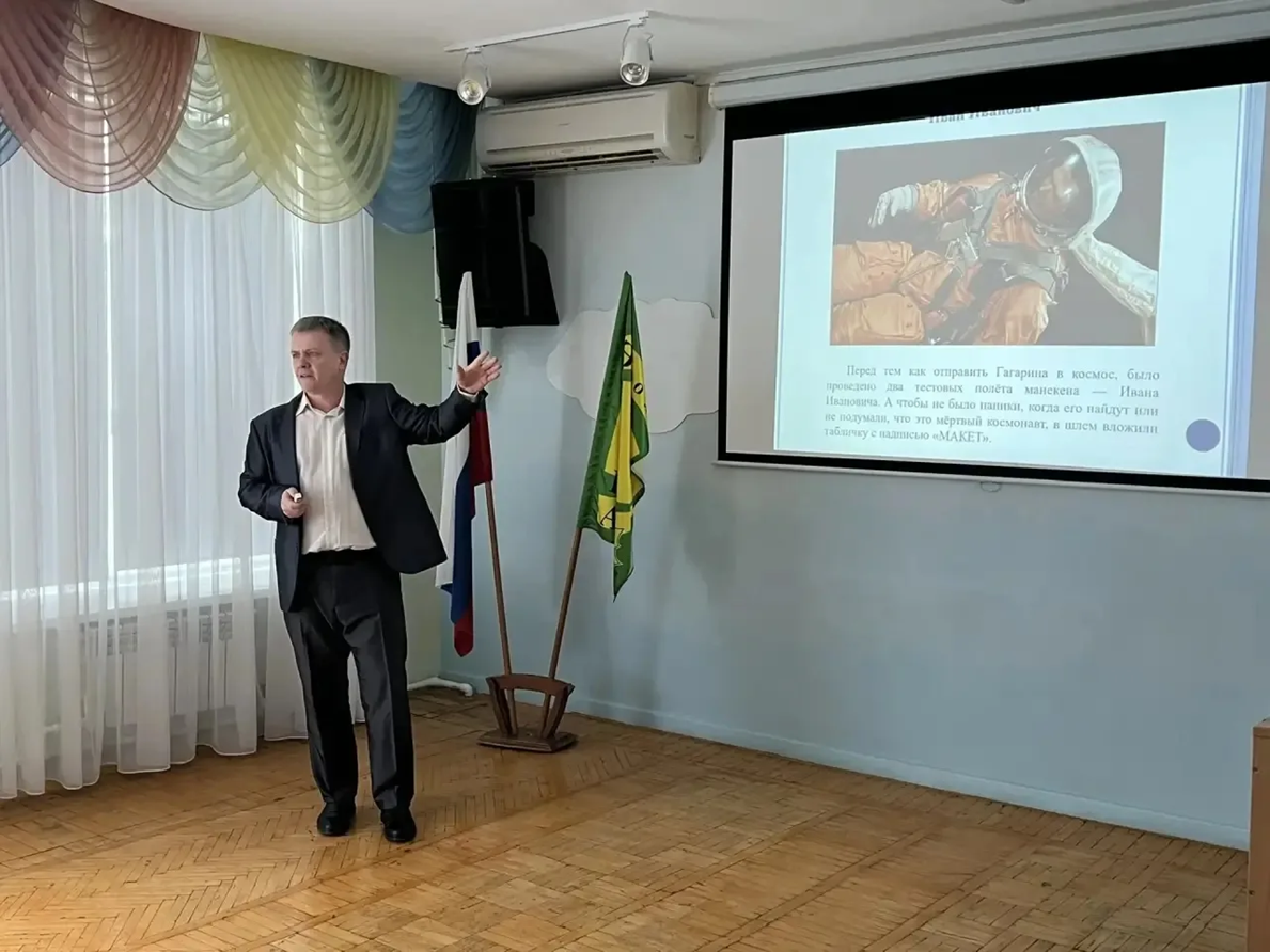 Новый интересный "Диалог с историей" состоялся у учеников 5-7 классов. В этот раз он был приурочен к юбилейной космической дате, 65-летию первого полёта человека в космос. Ребята вместе с учителем истории Андреем Александровичем Требунских вспоминали одно из самых значимых событий в истории человечества: полет Юрия Гагарина, который 12 апреля 1961 года открыл эру освоения космоса. В ходе встречи ребята узнали о подготовке к историческому старту и о том, как проходил полёт на корабле «Восток-1». Особое внимание было уделено значению этого события для развития науки и техники, а также для укрепления авторитета нашей страны на мировой арене. Ребятам довелось увидеть редкие фотографии и видеохронику о том, как проходил первый космический старт и как встречали нашего великого космонавта.