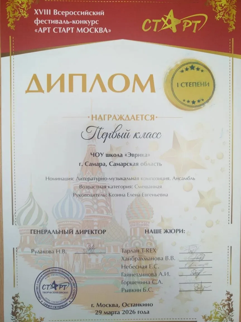 На весенних каникулах наши первоклассники вышли вместе с родителями на большую сцену концертного зала "Останкино" (г.Москва) с театральной постановкой сказки ''Лисья норка и заячья горка'' и блестяще представили нашу школу на ХVIII Всероссийском фестивале-конкурсе ''АРТ СТАРТ МОСКВА'' и были награждены дипломом I степени!