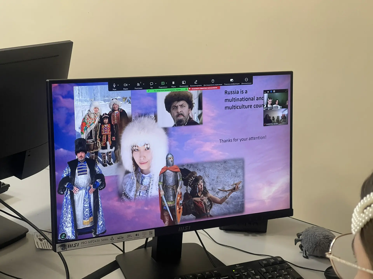 В этот раз в ходе телемоста ребята на английском языке обсудили традиции нашей страны, традиционную одежду и кухню.