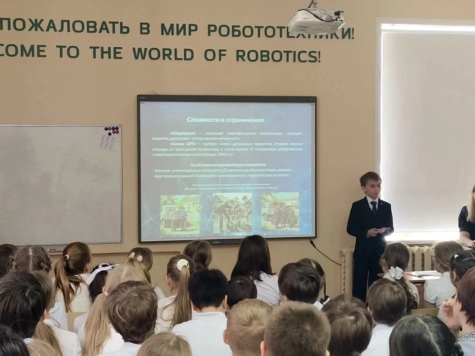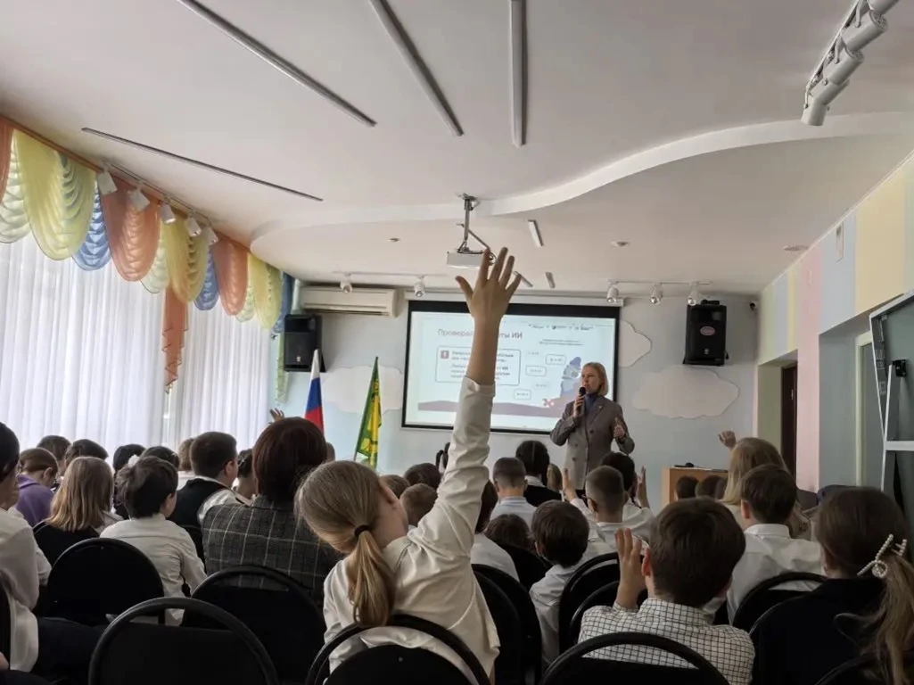 Сегодня в школе состоялась встреча учеников 4–6-х классов с Сергеем Александровичем Котельниковым, советником Председателя по цифровым технологиям Поволжского банка Сбер. Эксперт просто и увлекательно рассказал детям о возможностях искусственного интеллекта: помощь в учёбе, перевод текстов, создание картинок и подкастов. Но предупредил и о рисках: опасность дипфейков, утечка личных данных и слепое доверие роботам. Ребята активно участвовали в обсуждении и задавали вопросы. Главный вывод встречи: ИИ не стоит бояться, но нужно понимать, как он работает, и соблюдать цифровую гигиену!