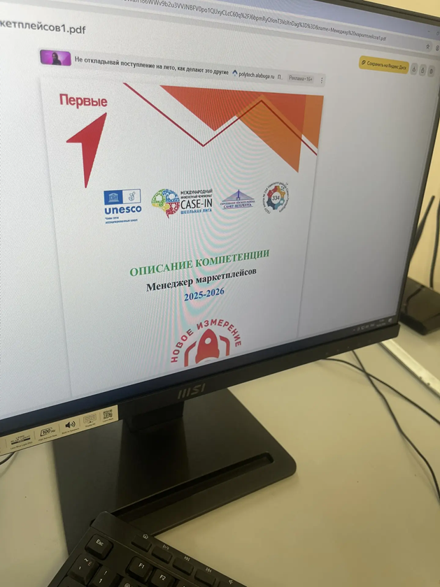 Сегодня ученицы 7-го класса приняли участие во Всероссийском форсайте "Новое измерение: реальные профессии". Форсайт является профориентационым соревнованием для школьников 12–14 лет, который проводится под эгидой ЮНЕСКО и Движения Первых. В ходе мероприятия наши участницы примерили на себя профессию "Менеджер маркетплейсов": создали карточку товара, рассчитали стоимость и предполагаемую чистую выгоду, разработали стратегии продвижения товара.