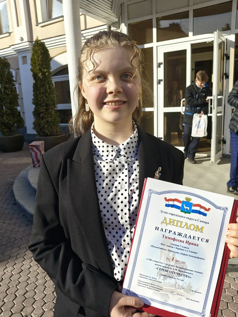Поздравляем нашу семиклассницу, занявшую 1 место, и ее научного руководителя - учителя истории Требунских А.А.
