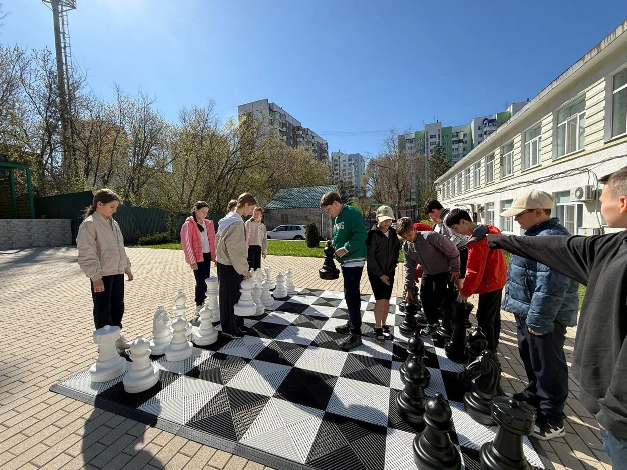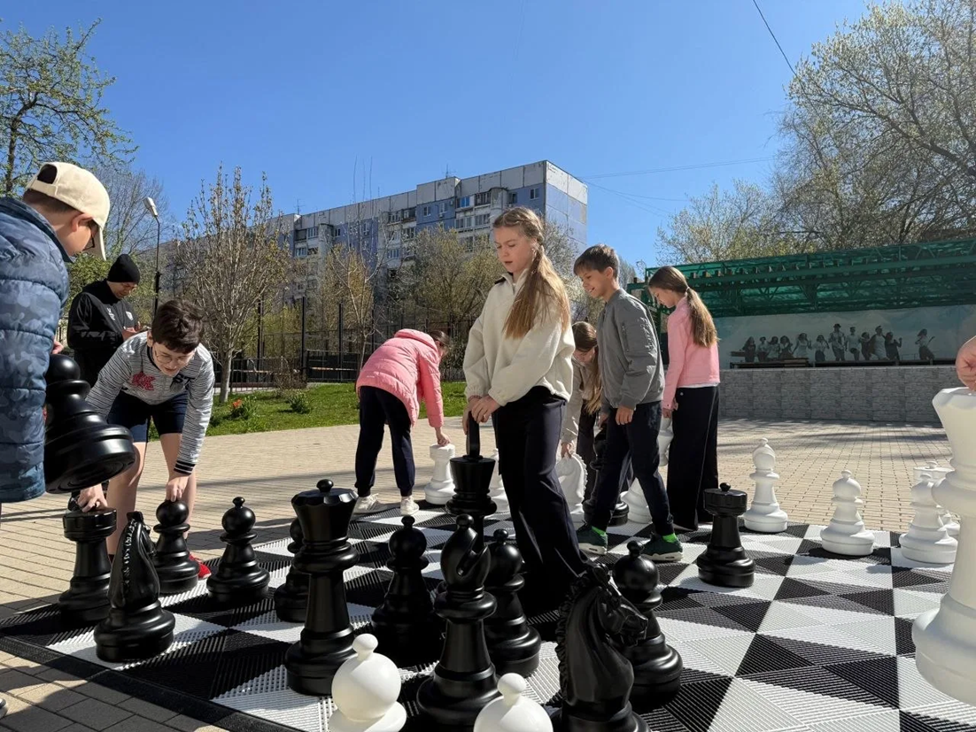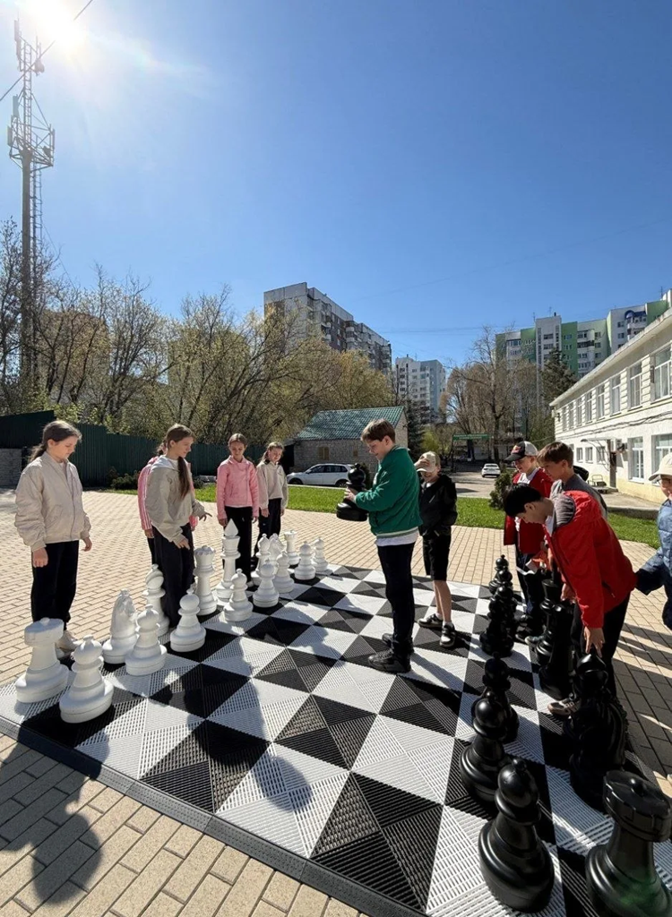 Ученики школы "Эврика" благодарят администрацию за приобретенные уличные шахматы!